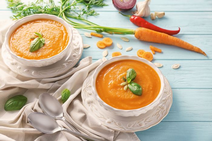 Colocar la zanahoria em agua en una olla y dejar cocinar hasta que se ablande. Luego, escurrir el agua y triturar la zanahoria, transformándola en puré. Añadir la sal, un poco de albahaca y servir.